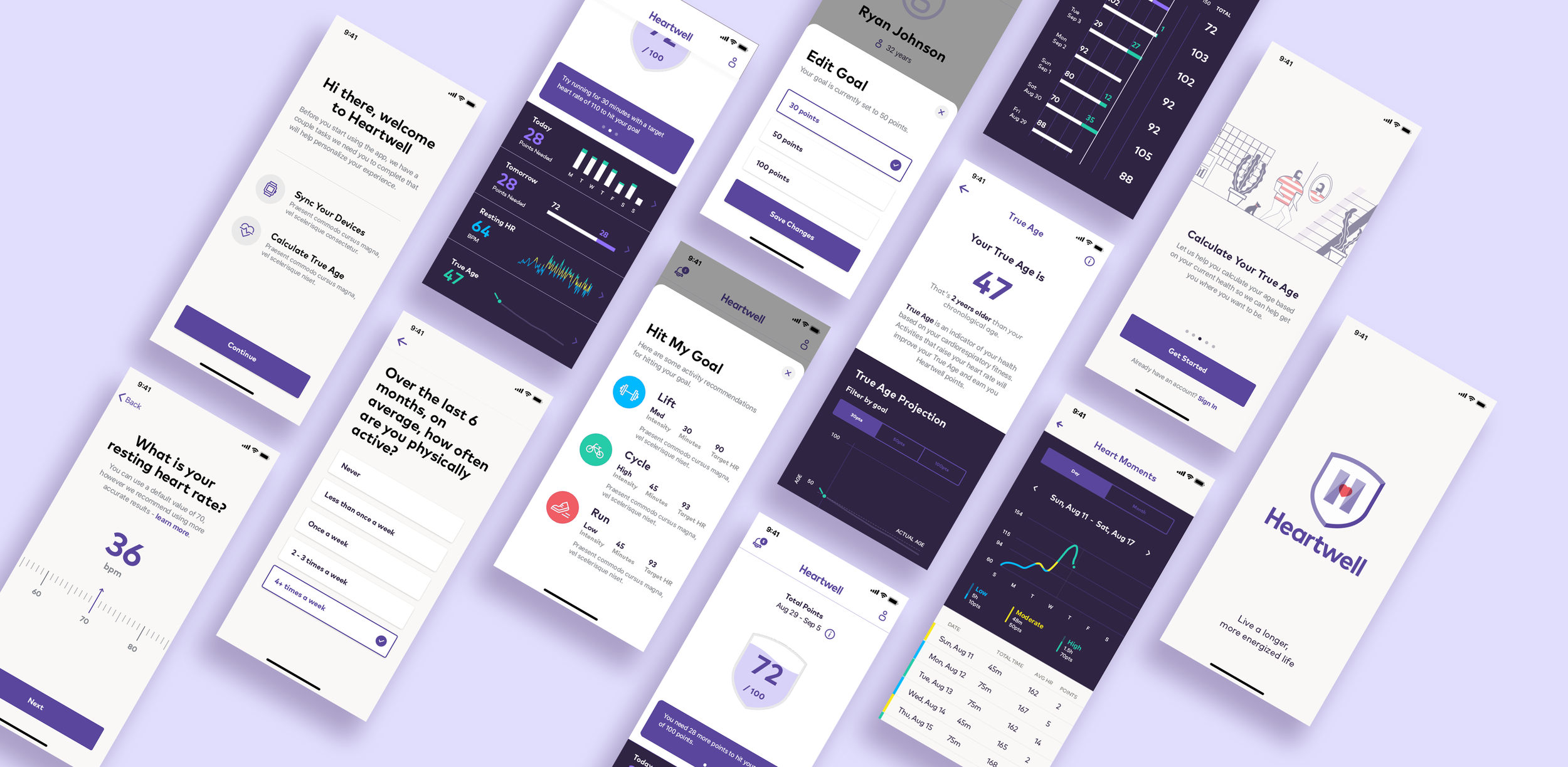I collaborated with PAI Health to reimagine their mobile fitness and health-tracking app called Heartwell.